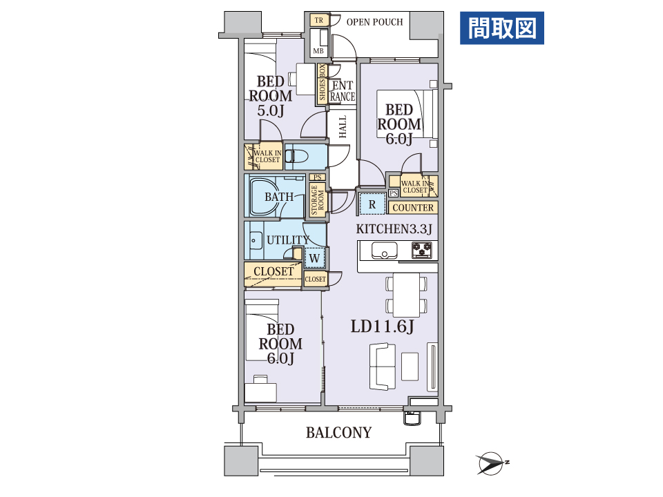広さは71.94㎡(約21.76坪)の3LDKで、バルコニーは12.6㎡*と広々しています。