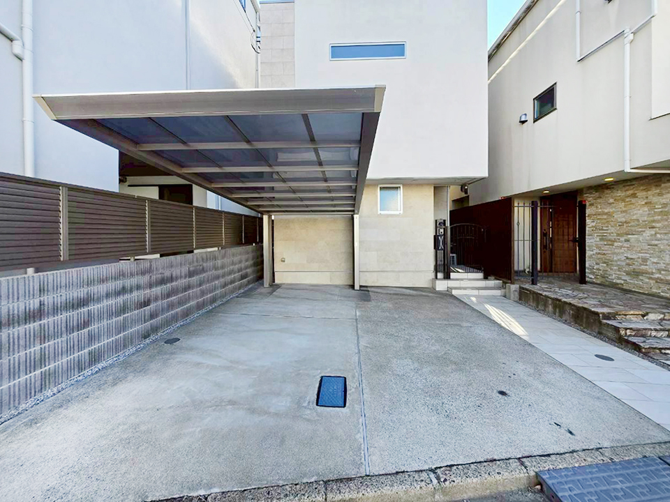 屋根付き車庫1台分に加え、並列で計2台の駐車が可能です